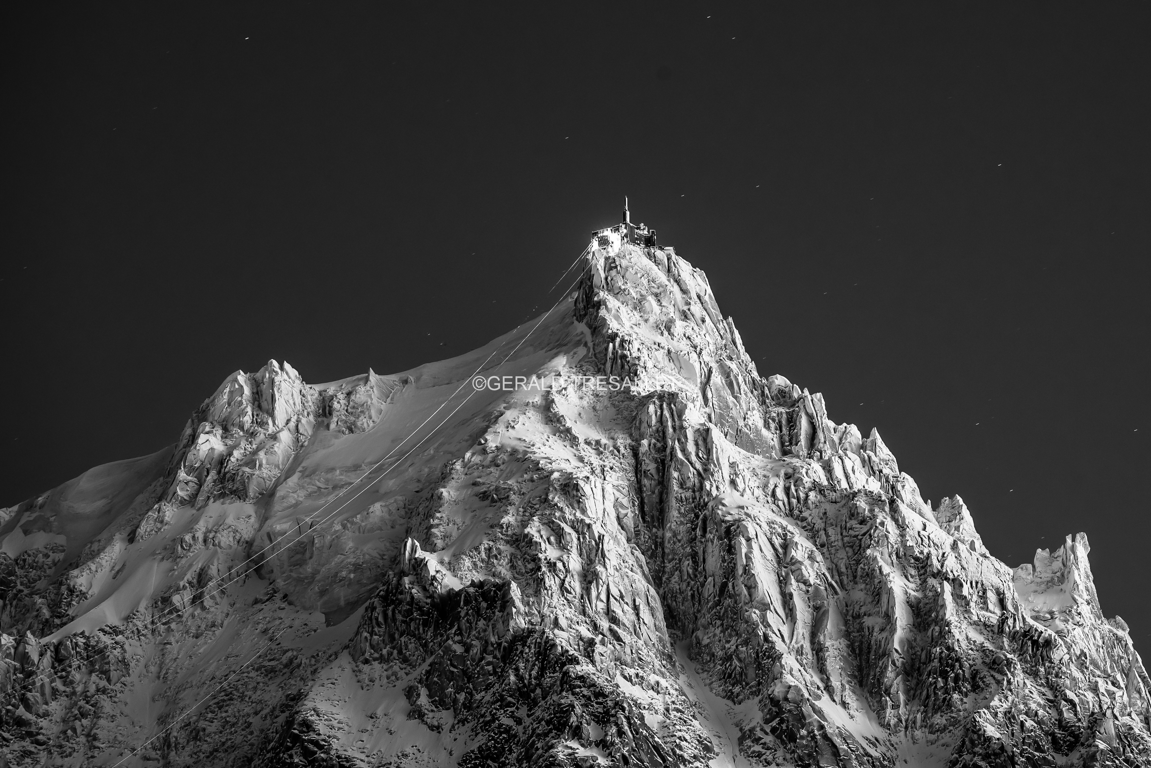 L'Aiguille du Midi en début de nuit, le 06 décembre 2018.
